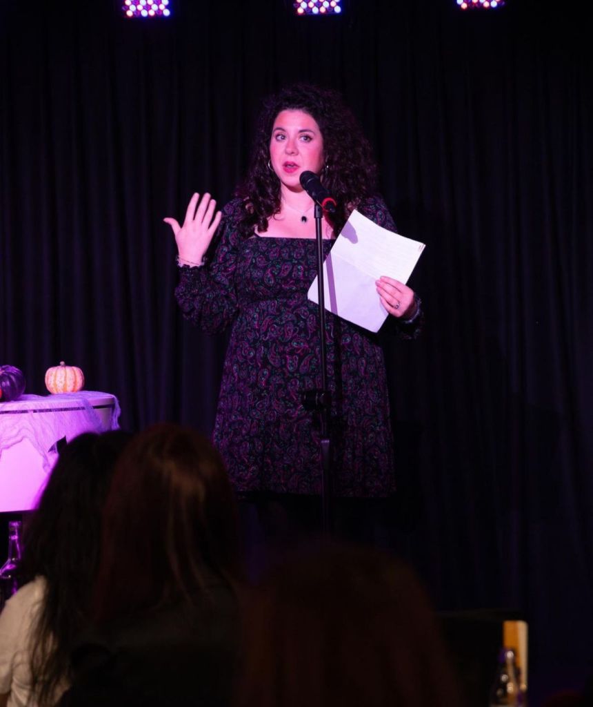 Ilaria hosted Verbose Manchester, an award winning monthly spoken word event, from 2023 to 2025. She continues to host various spoken word and cabaret nights in the north.